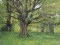 Ainu totem poles in spring – oil on panel – 6″ x 8″ –